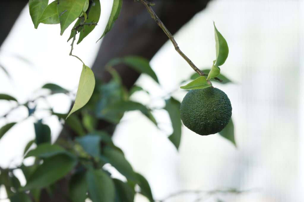 4月に植えた柚子の木に、とても小さな実がついているのを発見!!