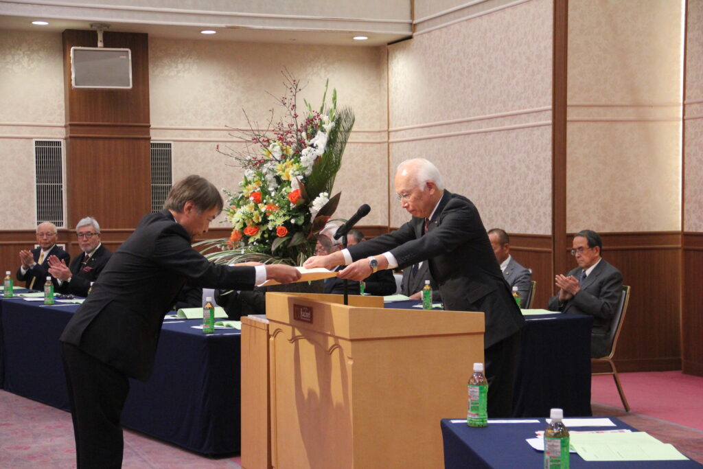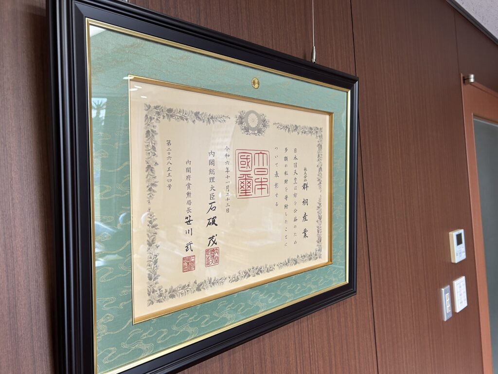 式典では多くの功労者と共に、弊社社長も登壇し紺綬褒章を授かりました。